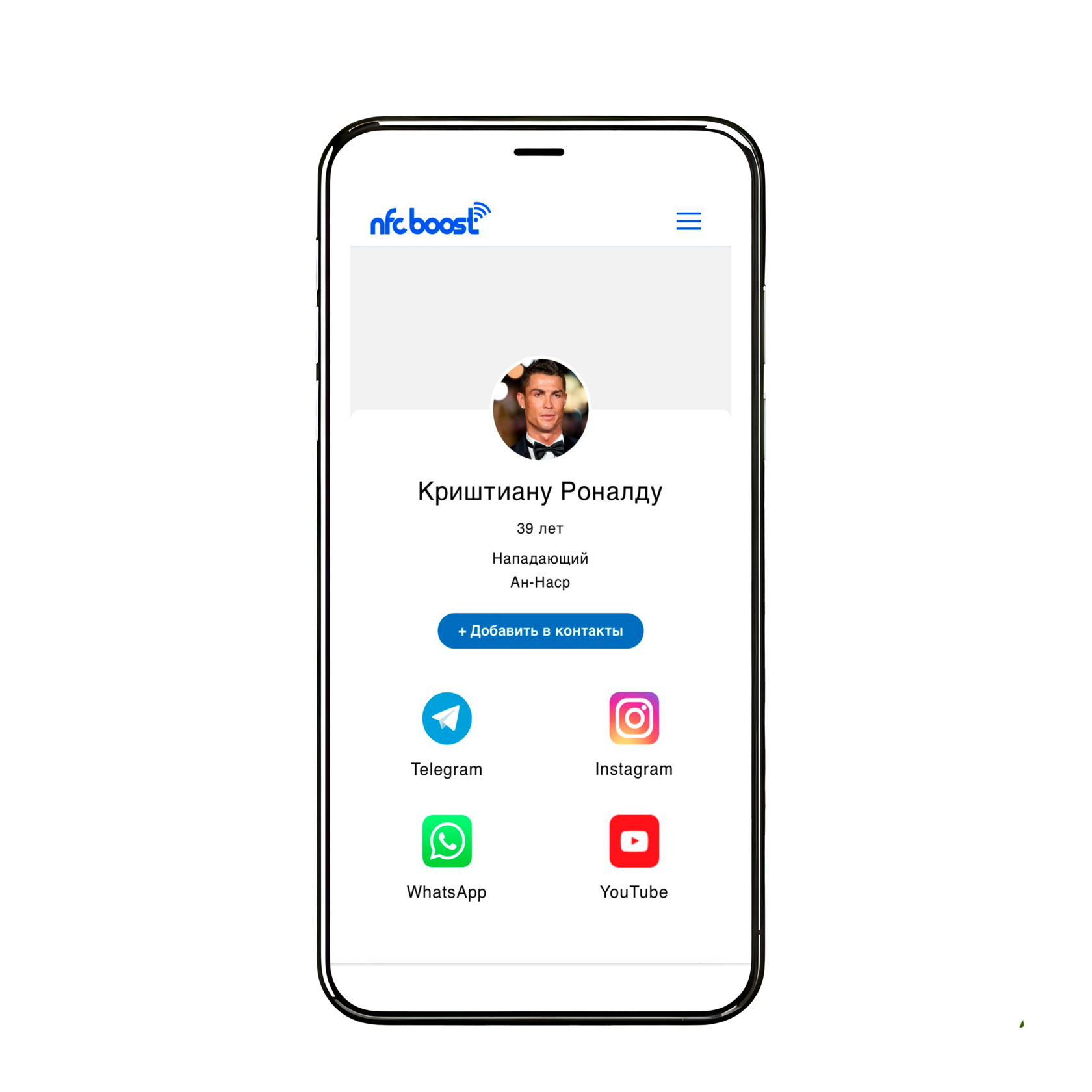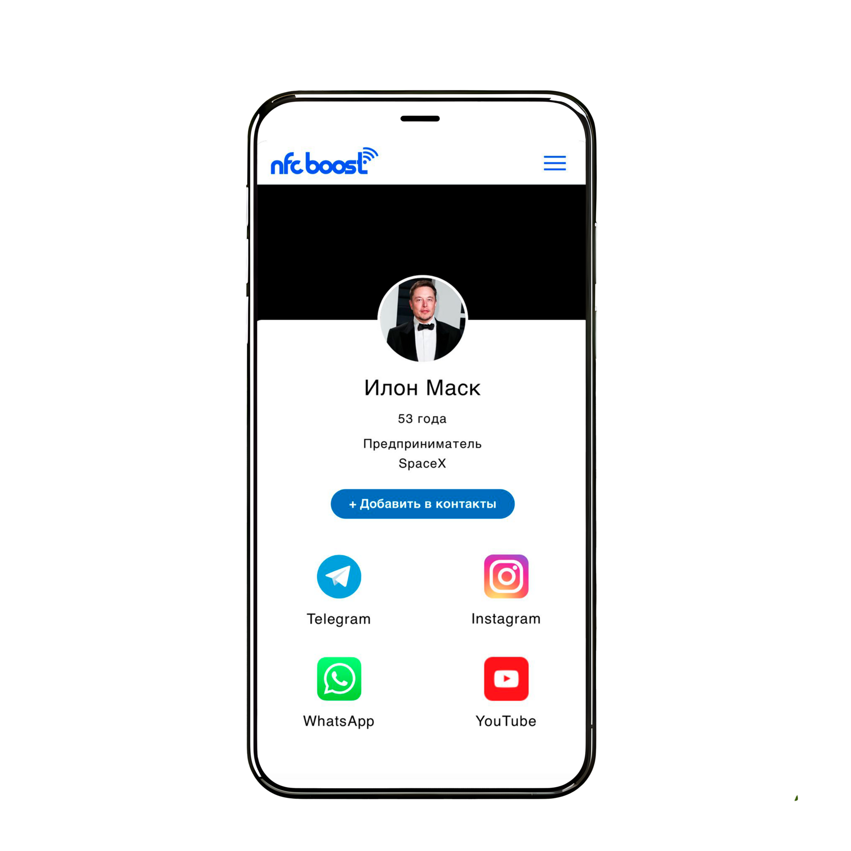 Клиент подносит свой телефон к визитке, и ваша контактная информация
